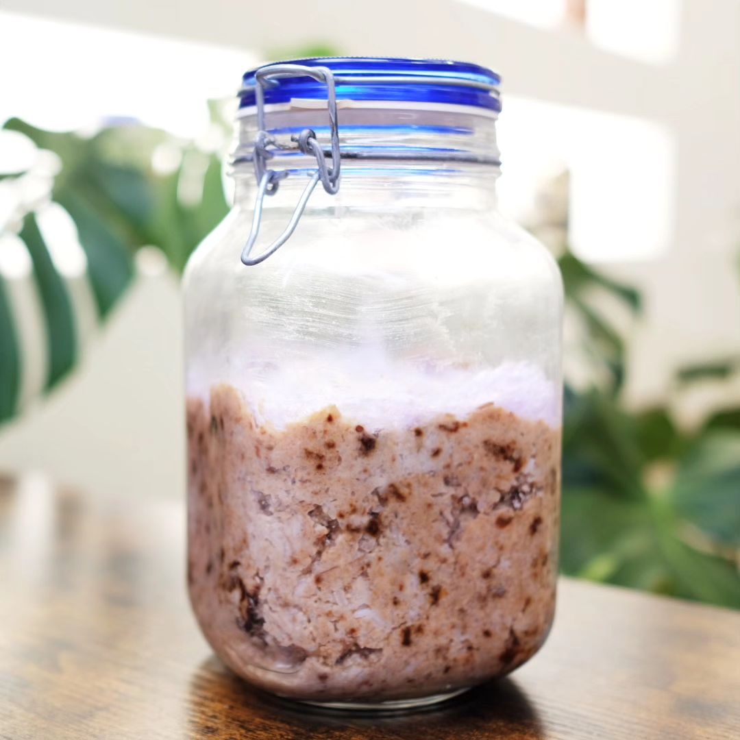 En este caso se trata de un miso de cebada perlada, arroz basmati y tomates secos. Tardará tres meses en fermentar lo necesario para estar listo, pero merecerá la pena. Buscamos un miso dulce y potente, que sea lo más versátil posible para utilizarlo en nuestra cocina.